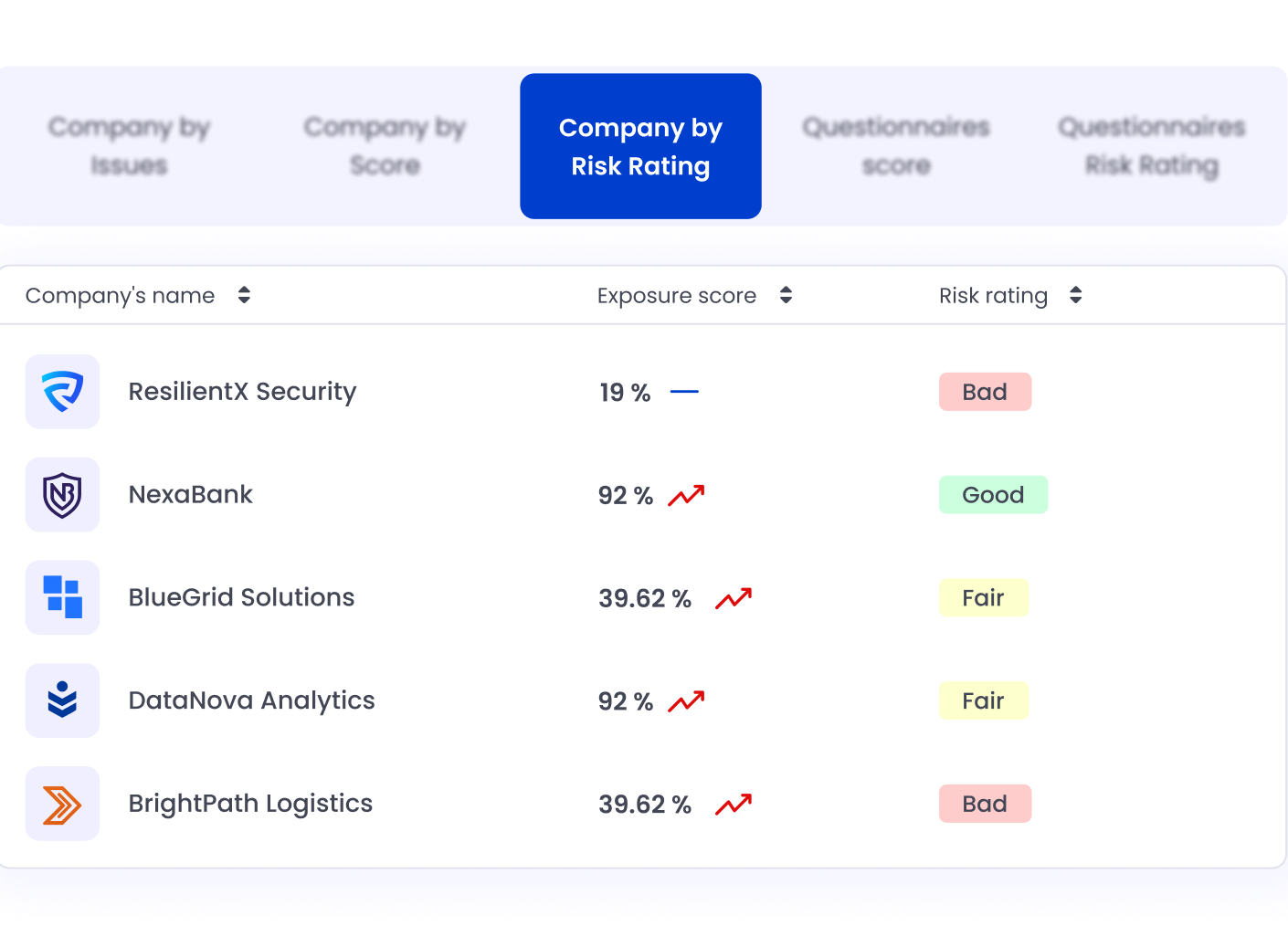 Third-Party Drift Detection: Get alerts when vendor security posture deteriorates or exposure changes.